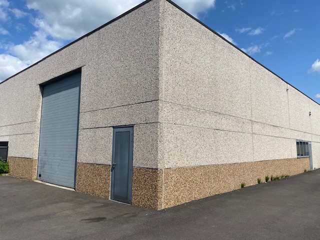 Entrepôt à Herseaux, près de Mouscron. Situé tout près de plusieurs autoroutes et voies navigables, la gare TGV et l’aéroport de Lille.